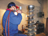 - 4.螺旋推料器采用特殊的成型方法,螺距误差小,叶片变形小,螺旋推料面可采用特殊防磨措施,喷焊硬质合金或镶装硬质合金耐磨片,防腐耐磨,使用寿命长。